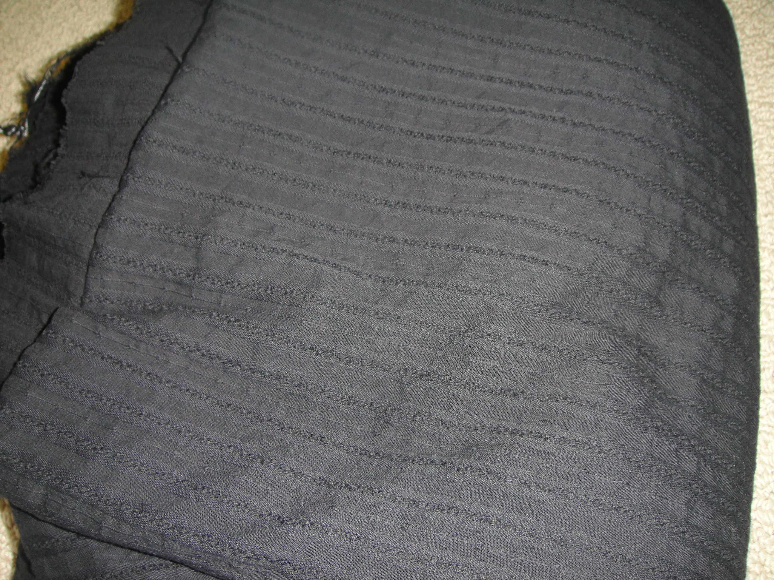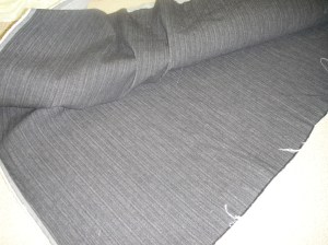 bought 3 metres of this stretch denim; it’s black with a subtle vertical striping effect. Fabricland had exactly three kinds of stretch denim (that I could find) and this was the only one that wasn’t $18/m. (Now… if I get to the point where I can put together a top-notch, kick-ass jean, $18/m is still less than $40 for a pair of jeans and thus roughly half the cost of the jeans I typically buy, even allowing for notions. But for a first go… this stuff came to about $8/m, which is at least halfway bearable if I create a complete wadder. Of course, when I checked the stretch, instead of the 20% Jalie recommends, it’s more like 30 or 40%… so I went and retraced the pattern a size smaller. I bought three metres (what was left on the bolt)… I’m hoping it will be enough for a set of capris (the trial run) and a full-length, but we’ll see. If not I’ll get a couple of pairs of capris for the summer and my oldest daughter will get the jeans she’s been asking for.