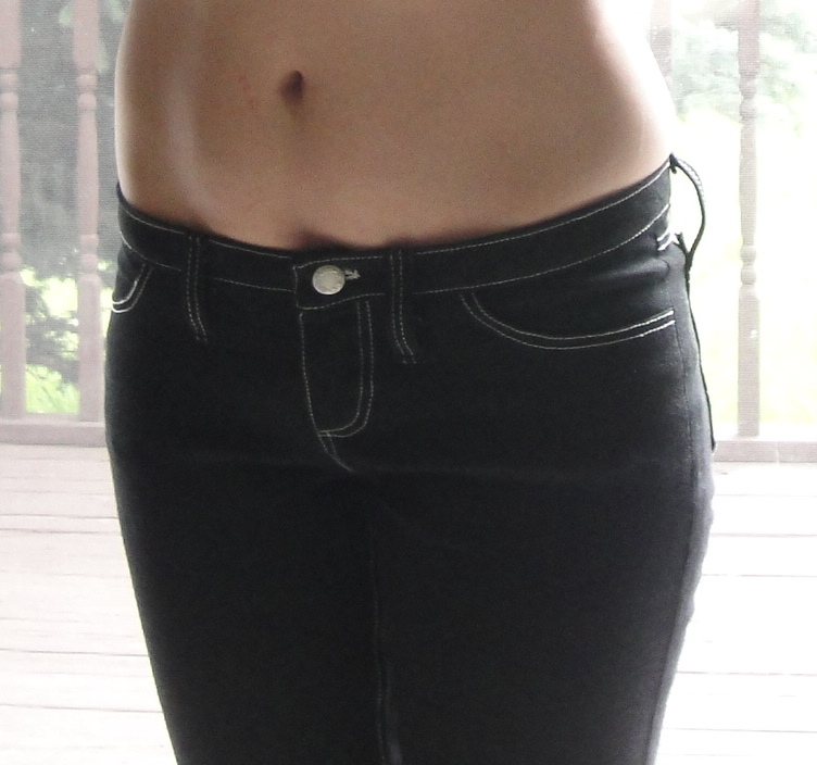 This fabric was actually a 20% stretch, and I still wound up taking in the size Q about a cm on each side, so I think I should probably just narrow the pattern by that amount, as well. I’m a little torn about the length. If they were a boot cut, the length would actually be perfect. Skinnies, on the other hand, don’t need to be quite as long. And these mostly behave as skinnies, although