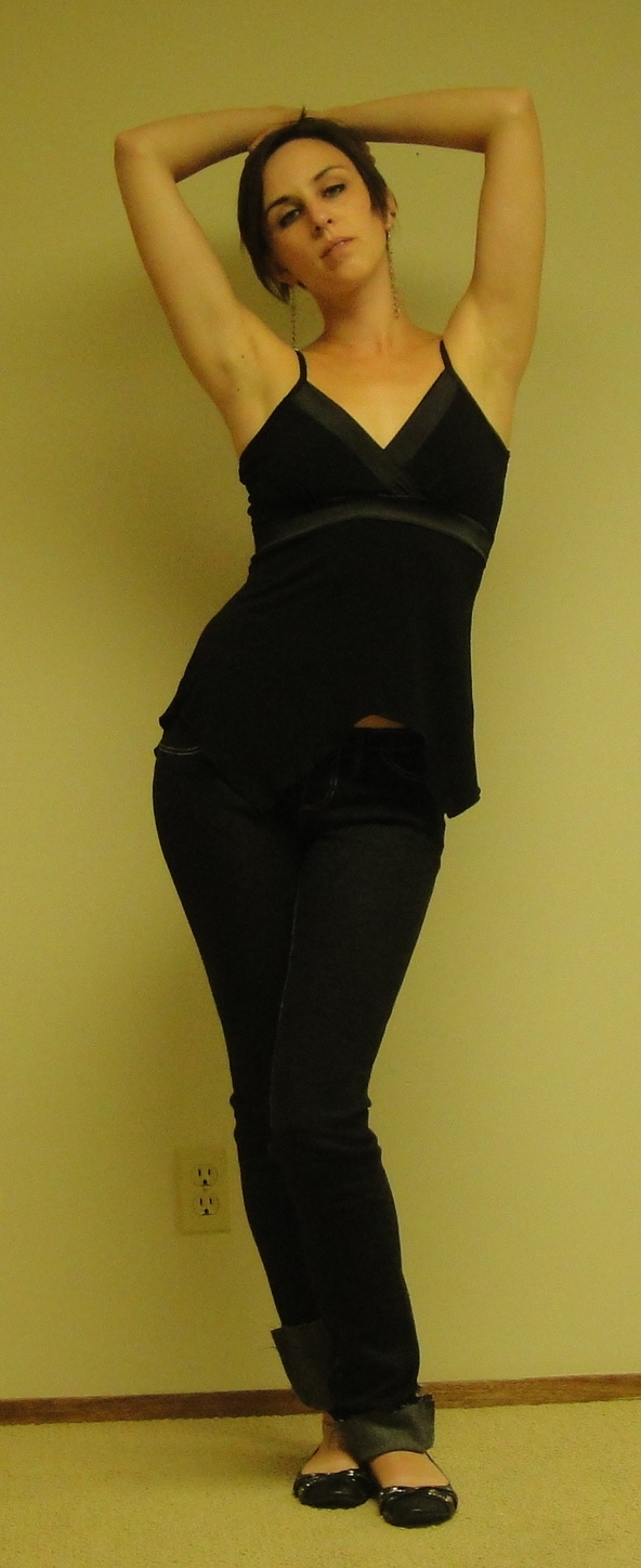 Anyway, here they are: black jeans with bright silver topstitching, Eye-popping. Maybe not the best choice considering my mediocre topstitching skillz. Ah well. I shall be more restrained for my next pair. I just loved the contrast.
