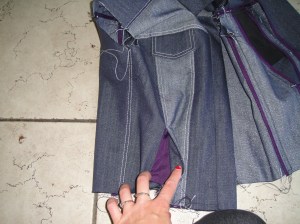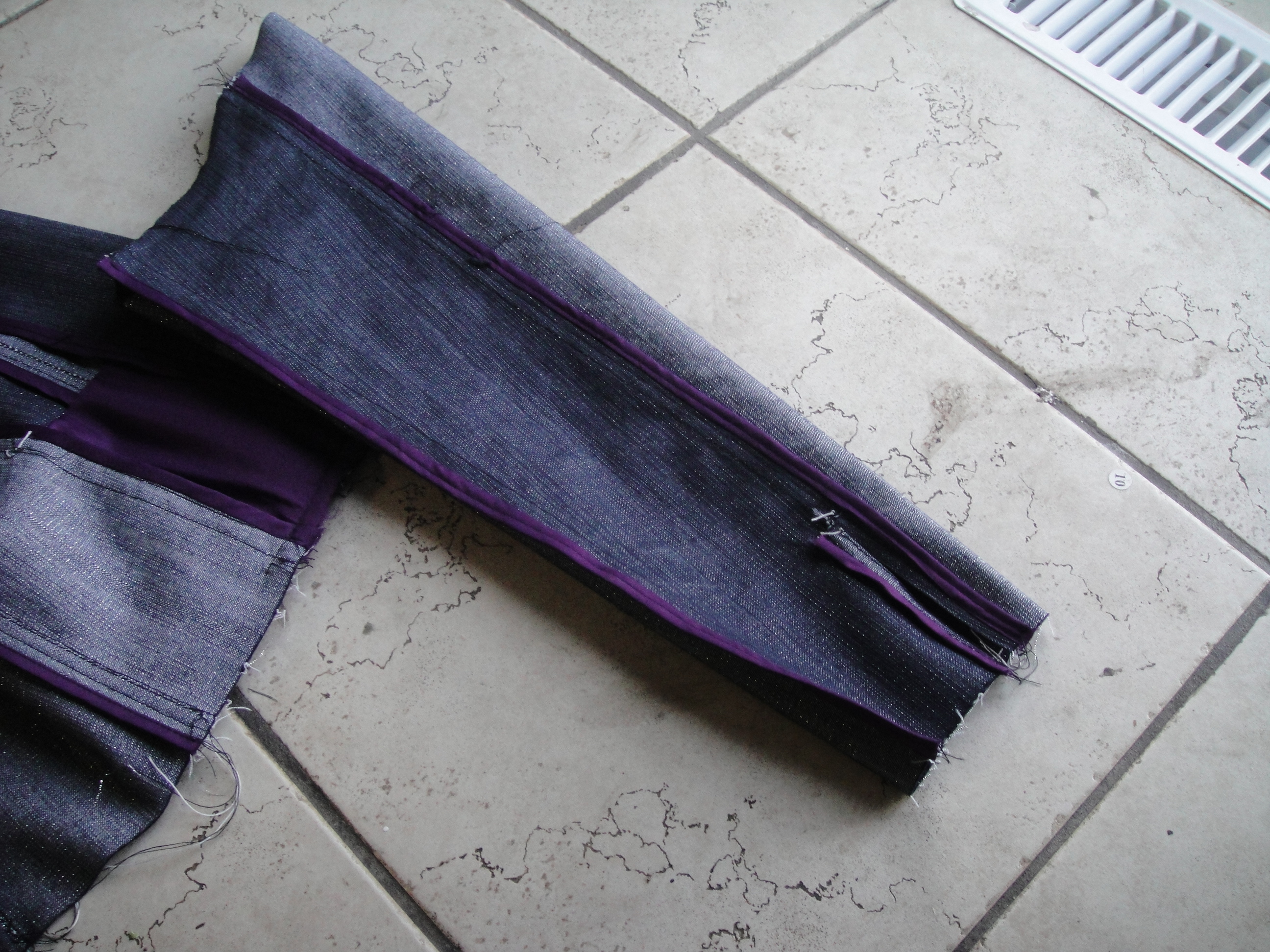 loopiness underneath! Unfortunately, I didn’t think to try this until I was about two-thirds of the way along, so there’s a lot of loopy topstitching. Ah well. Live and learn. I couldn’t decide whether I wanted to use the darker (right) side of the fabric or the lighter, shinier (wrong) side. So I used both! Keeping track of which was which was a bit of a pain, though.