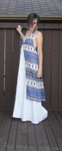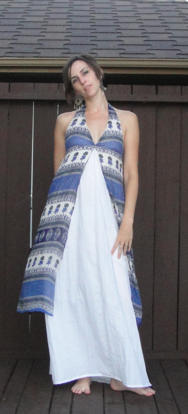 I added the patterned overskirt because I thought it would be pretty; the gauzy patterned cloth, as I mentioned before, was a broomstick skirt I’ve had forever. I like how it looks although it was a pain to cut out (especially since I wasn’t using pins).