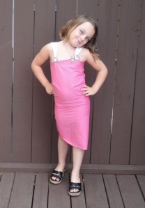 The pink outfit is, as you may have guessed, made from the last few remnants of the pink poplin I made the twirly dress out of. The white is the most satisfying use of a wadder I can imagine. I had been meaning to try to salvage the bodice part of my Lydia Disaster, but really—watching it shredded by a 10-year-old deconstructionist is much more satisfying.