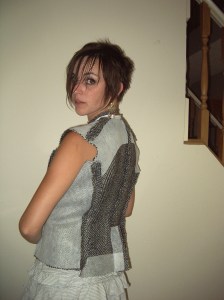 And partly it’s my fabric. The jacket was designed for faux-leather, and my wool is MUCH thicker than that. I think this thickness is the main problem with the collar, which is sort of heavy and ugly without anything being obviously wrong with it. I think someone with perfect tailoring skillz could have made a nice fitted jacket out of this wool, but I suspect that someone of my calibre should’ve stuck with something a little more basic. D’you think a sleeve-head or a shoulderpad would help?