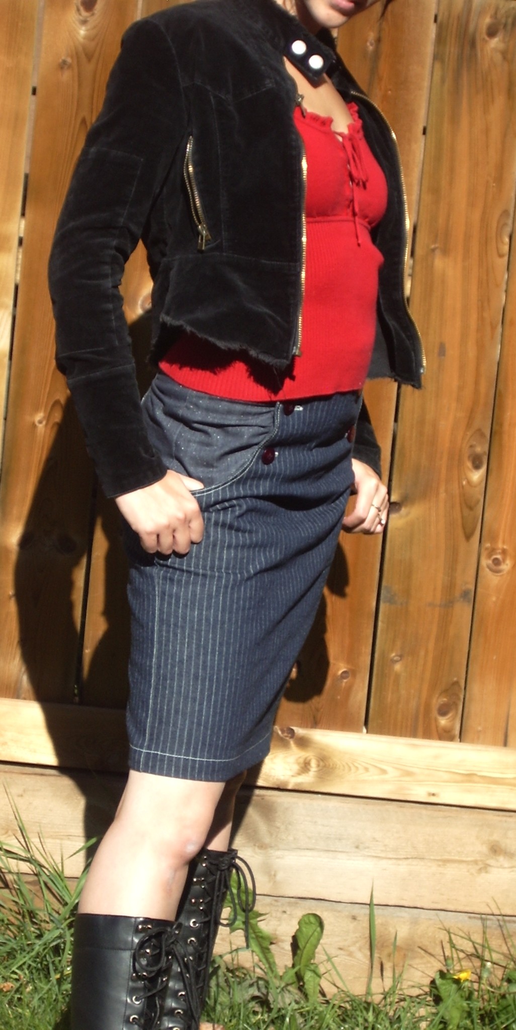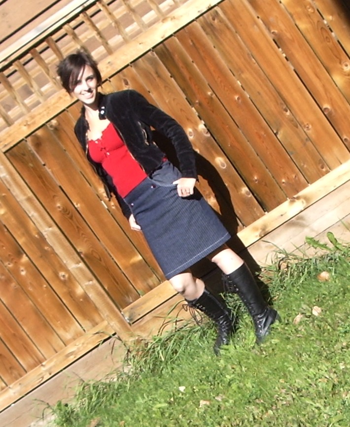 I don’t do style or outfit posts much; they’re not really that interesting to me. But I’m going to burden you with this one because figuring out how to wear this skirt is such a mental stretch for me. I wore the Kasia out of the house for the first time today, styled as in the photos. I’m much more comfy with it with a shirt un-tucked. Yes, I realize that pretty much defeats the purpose of a high-waisted skirt. Sorry. Oh, and you can thank the 10-year-old for the edgy photography ;)… now I just have to remind her to include my head and feet in the photos.
