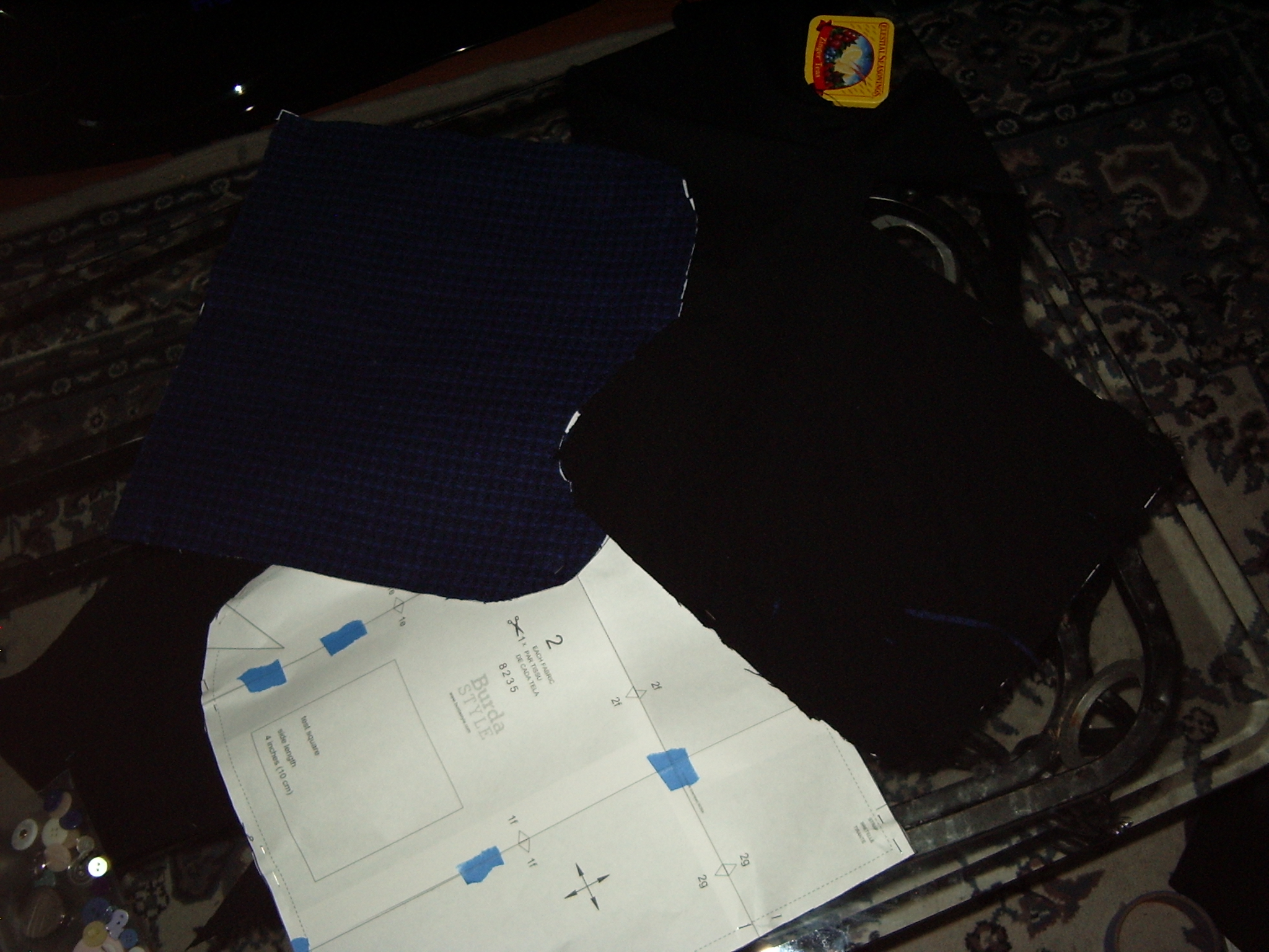 I suggested she might want to learn to sew on a bag. Maybe a messenger bag (she was ogling some out shopping this morning, but opted to save her money for an army-style coat instead). So we went scrounging, and shortly after downloaded the Diana bag pattern. Now if it were me I would probably just have made up my own pattern (really, it’s just some rectangles, right? I had probably been sewing six or eight years before I ever even looked at a pattern…) but she was really excited by the idea of a pattern. So we just spent an evening printing out the pattern, cutting and gluing it together (it goes nice and quick when you have someone else to do the gluing!), and then I sat her down at the sewing machine with (OMG!) no thread and paper. And started her sewing lines, lining the edge of the paper up with the 1.5 cm marking. And then some curves. I never thought I’d actually use the no-thread-just-paper method. It sounds so boring. Can you imagine anything dumber? But… it saves me thread. And she really is pretty bad at it. Impressively so. And she seemed pretty excited and intimidated by even just the paper, so starting right in on fabric probably would’ve been a disaster. I think I’m going to mark the stitching lines right on the frabric, when we do get there. She was astoundingly into it, hyperventilating, panicking at the thought of her seams not being straight enough. Kid needs to chill out. But it was cute.