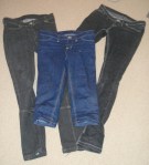 - Jeans: two full length, one capri. Not looking like I’ll get much mileage out of the capri set, however.