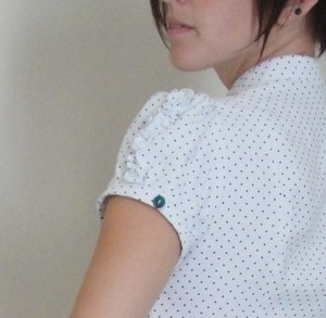 Yes, folks, that is a sleeve ruffle. On the JJ puff sleeve. I put sleeve ruffles on a shirt made from the Selfish Seamstress’s own fabric.