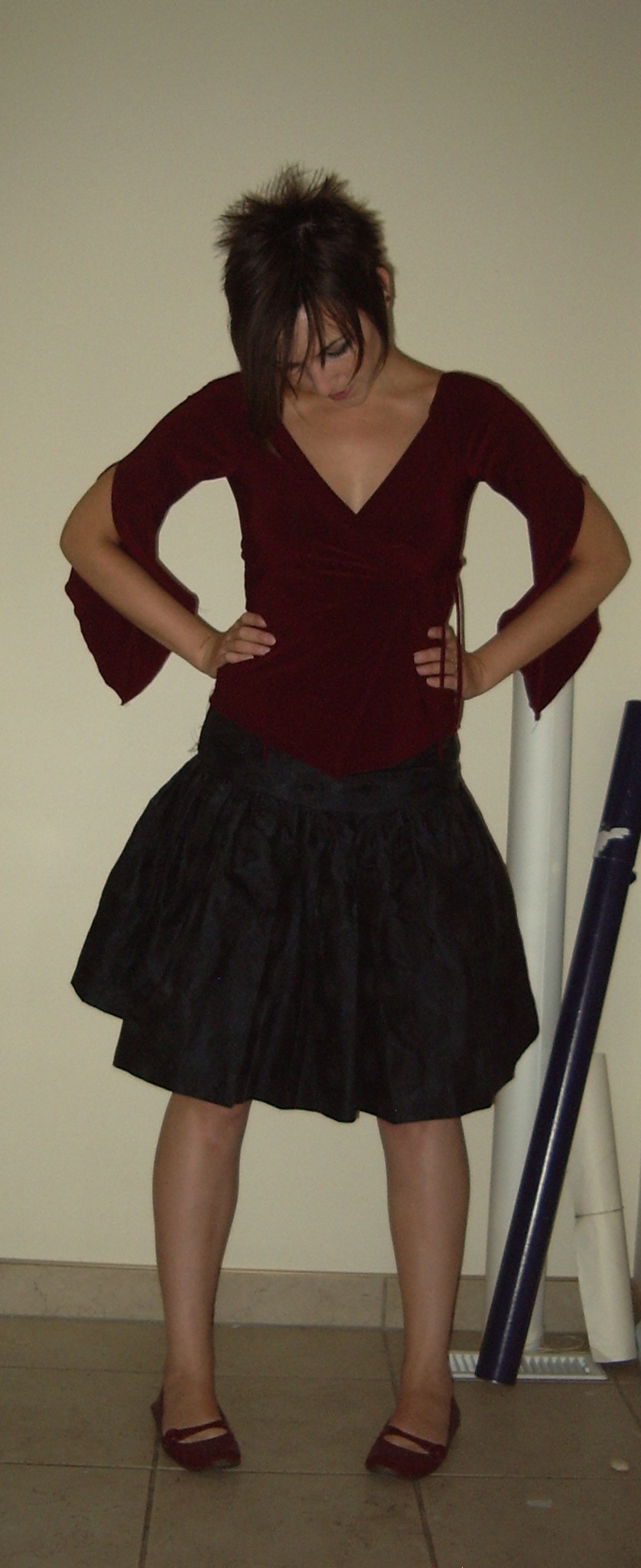 Whatever you do, I really like the skirt. I even like how the poof looks on you. And I like your “someone is following me” pose! π