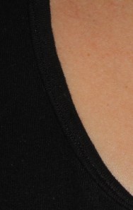 Very envious of your binding technique! So is the elastic stitched to the inside of the shirt, thus being sandwiched between the shirt and binding once you turn the binding in? I’ve yet to work with clear elastic but have been seeing a lot of good results from people. It may be useful in some of my t-shirt re-fashioning.