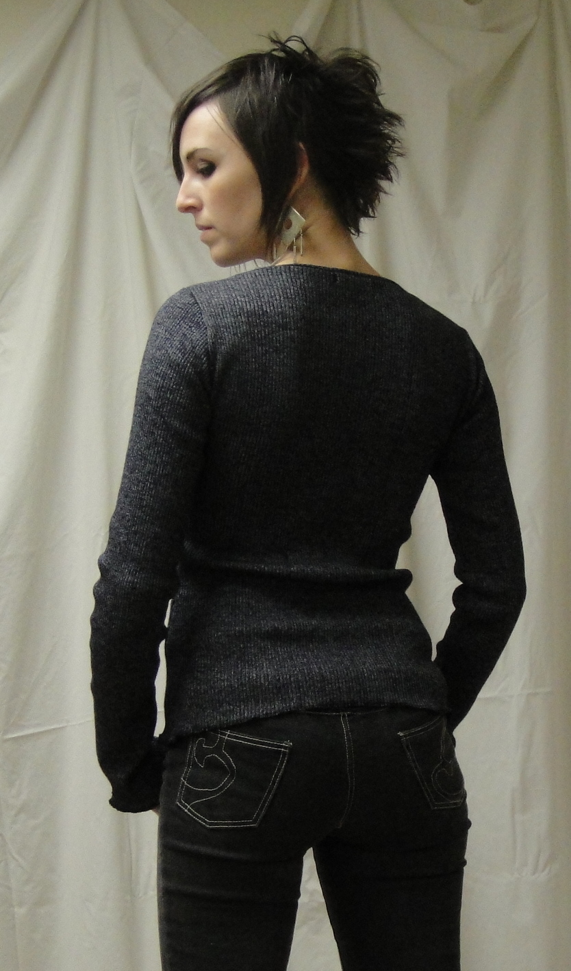I like it! It’s a nice contrast between the cosy warm fabric and the sexy peekaboo neckline.