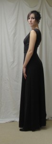 In the stretchy (whatever the heck it is), I should probably have used the original bust-length, as the extra length doesn’t seem to be necessary. I had narrowed the bodice sides 1/4″ on the pattern, since it seemed a bit roomy under the arm,