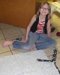 I made Felicity cut out her circle skirt! I’ll probably be making her sew on her own blouse buttons. She has her own sewing machine and table but it seems we can’t get the right bobbins.. or something. In any case I’m hoping to get her machine functioning so that maybe she can start on her own projects. Possibly doll clothes?