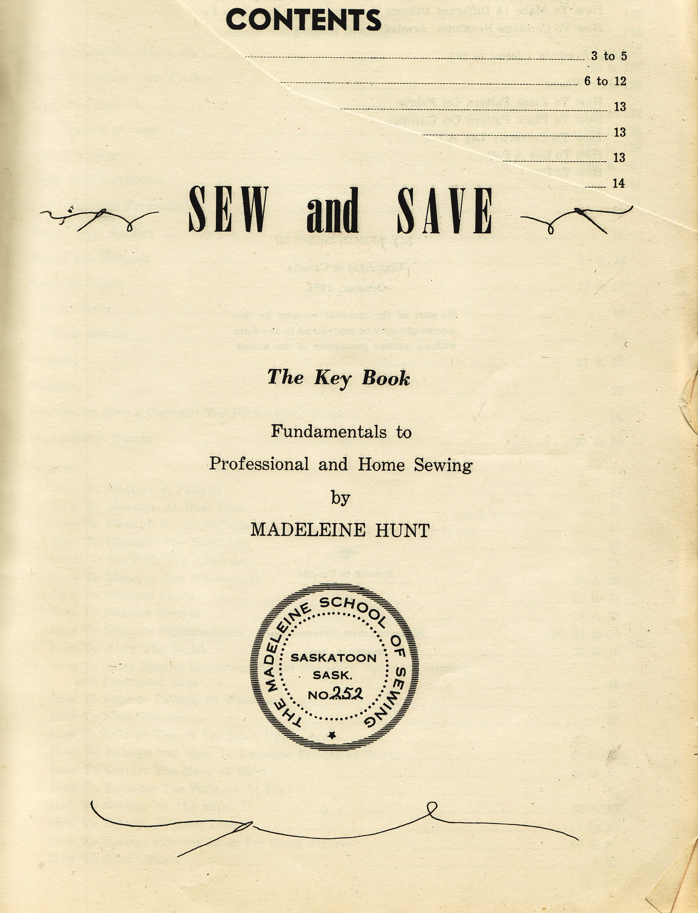 My mother, in her assiduous trawling of the charity shops in my home town, stumbled upon this gem of a book, published and distributed by a local sewing school in 1953! It appears to have been the textbook for their course, which was available at least in part by mail as there is a note concerning a charge of $.50 to $1.00 plus return postage for correcting each assignment.