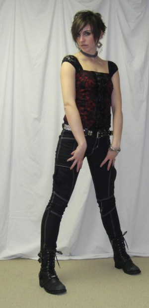 They look SO hot! Now I have to get the Jalie pattern–I’ve been debating forever. And I love them with the goth gear! Seriously, SO hot–you’re amazing!