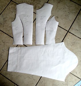 I’ll confess that muslin fabric ended up making my hobby too expensive, so I opted to start basting the pieces together instead. That’s nice for two reasons 1) I can see how the garment will fit in advance and 2) I can see how the darn thing goes together while I still have the big stitches that are easy to rip out!
