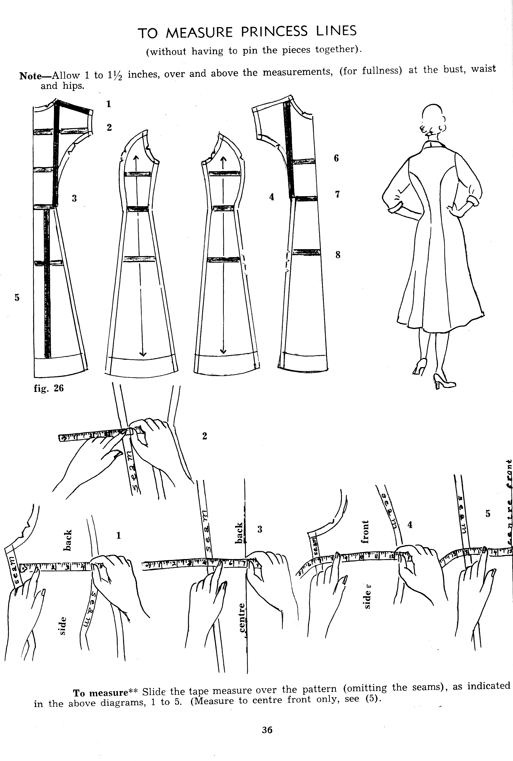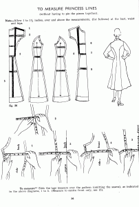 The book has twelve full pages dedicated to measuring patterns, going over every common type of pattern at the time—princess seams, kimono sleeves, gored skirts, sleeves. I’m too lazy to scan them all right now, so I’m just including the ones that are relevant to me right