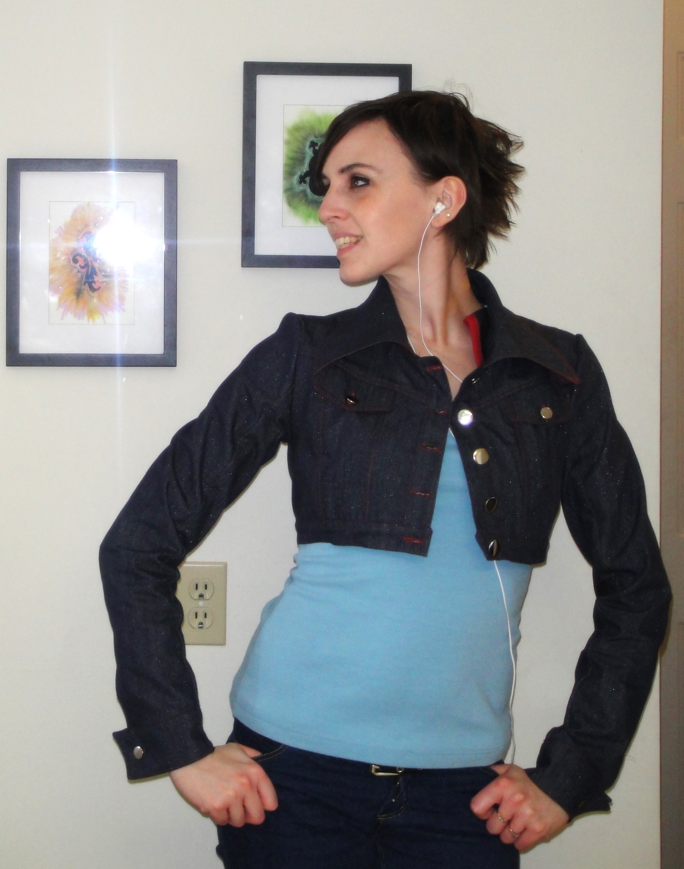 Which is not to say that this jacket is anything like flawless (I did mention the collar points before, didn’t I?), but on the whole it came together pretty well. The fabric was thin (for denim) and crisp enough that my machine did the buttonholes with scarcely a whimper.