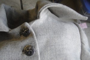 It is by dint of great restraint that I am not showing you full, modeled shots of my springy coat, as I am loving it. But I am determined to retain some elements of surprise, so you will have to subsist on teasers for the moment. The sleeves went in well, although my princess seams don’t line up with the sleeve seams as well as I’d hoped (sniffle). There was a bit more ease to the sleeve cap than I might have liked, although it wasn’t a problem with this particular fabric. Denim would be another story, I’m sure. I love my buttons, too. I forgot to add a hanging-loop and my label before sewing in the facing, maybe I will just have to do that by hand…