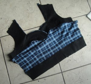 Probably, it will all be fine. I like piping. I like plaid. I have a great excuse for not even trying to match my plaids. The black detailing looks pretty sharp. The neckline may be higher than I wanted, but that’s hardly the end of the world. At least I’m pretty sure this one will be large enough (if not a bit too large, given the stretch in both my fabrics)