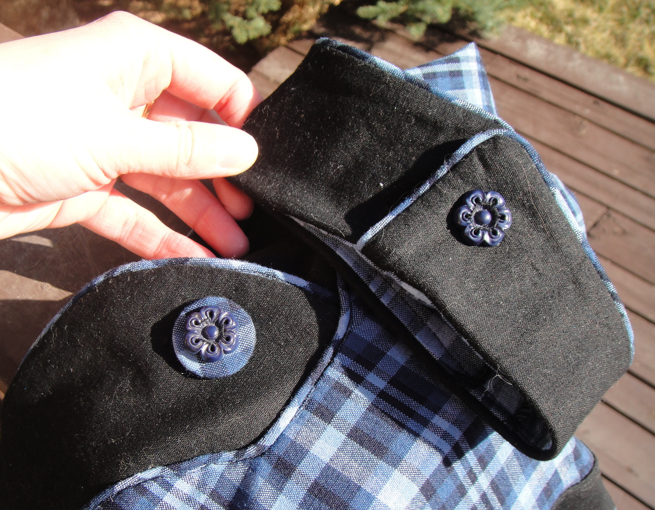 I was really glad I got to use these buttons. I figured there were three, the colour was right (and I don’t sew that much in dark bluish tones), I just needed a way to make at least the front one big enough for the design.
