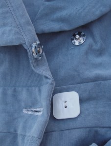 There is a single button closure in the front (perfect for using up one of those striking, solitary vintage buttons). I was a little concerned that the top would gape—the pattern illustration shows a nice, close finish right at the bottom of the collar, but there’s no obvious way to achieve this. Well, on arriving at that point in the instructions, all is revealed: or rather, a single large, heavy-duty snap is called for. Fortunately I had picked up a couple thinking I might use one on the Springy Coat (I haven’t yet, the slight gaping doesn’t really bother me while I’m wearing it). I was hoping for clear plastic, but all they had was metal… ah well. It’s more “vintage”, right?