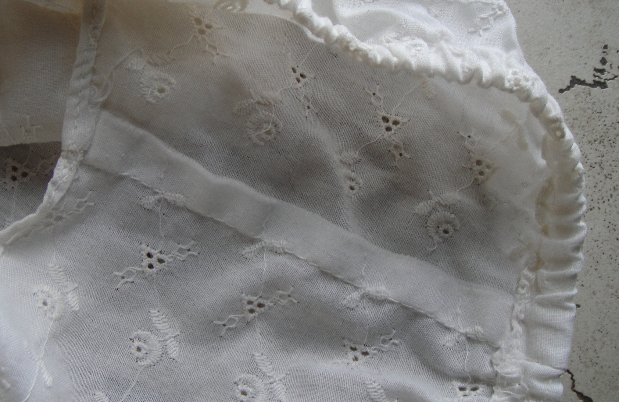 Anyway, it was a matter of moments to open up the elastic casings and pull out the old elastics, and only a few more minutes to thread in new elastics, hunt down Tyo to snug them to the right size (Syo’s expression when I asked if she wanted to try it on was, shall we say, unimpressed?), and sew them closed. Then I soaked in a bowl with some Oxy-Clean for a couple of hours in the hopes of brightening up the colour a bit, which I think was successful although it’s hard to tell in the photos.