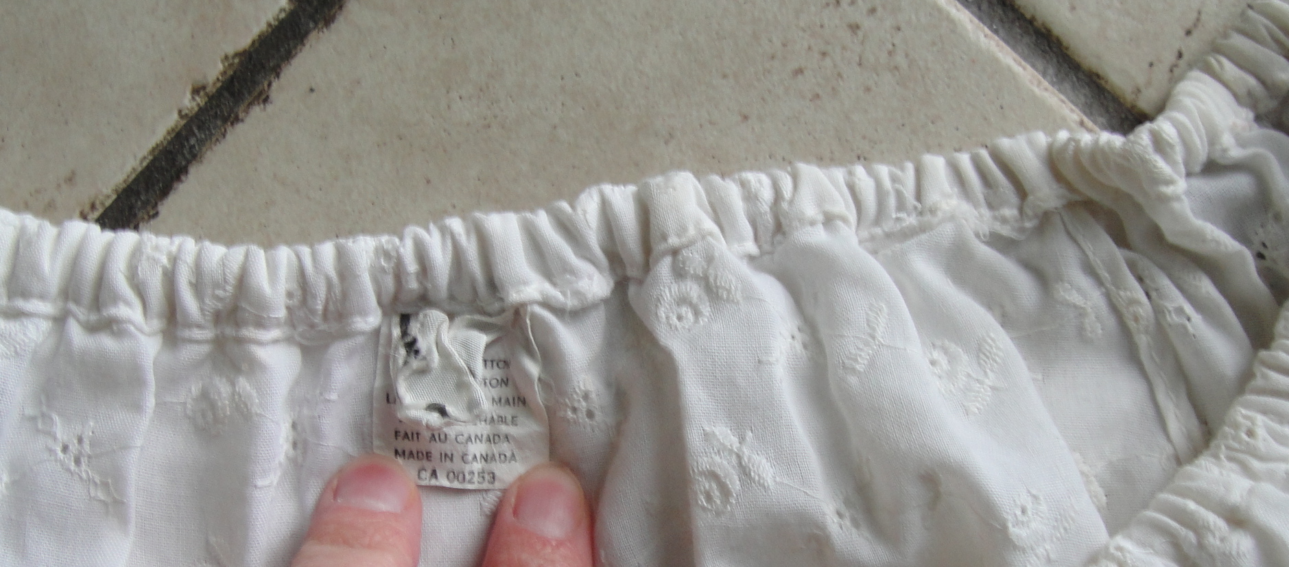 I noticed a couple of interesting things about the construction of this RTW piece. First, observe, regular RTW tag, Made in Canada, even.