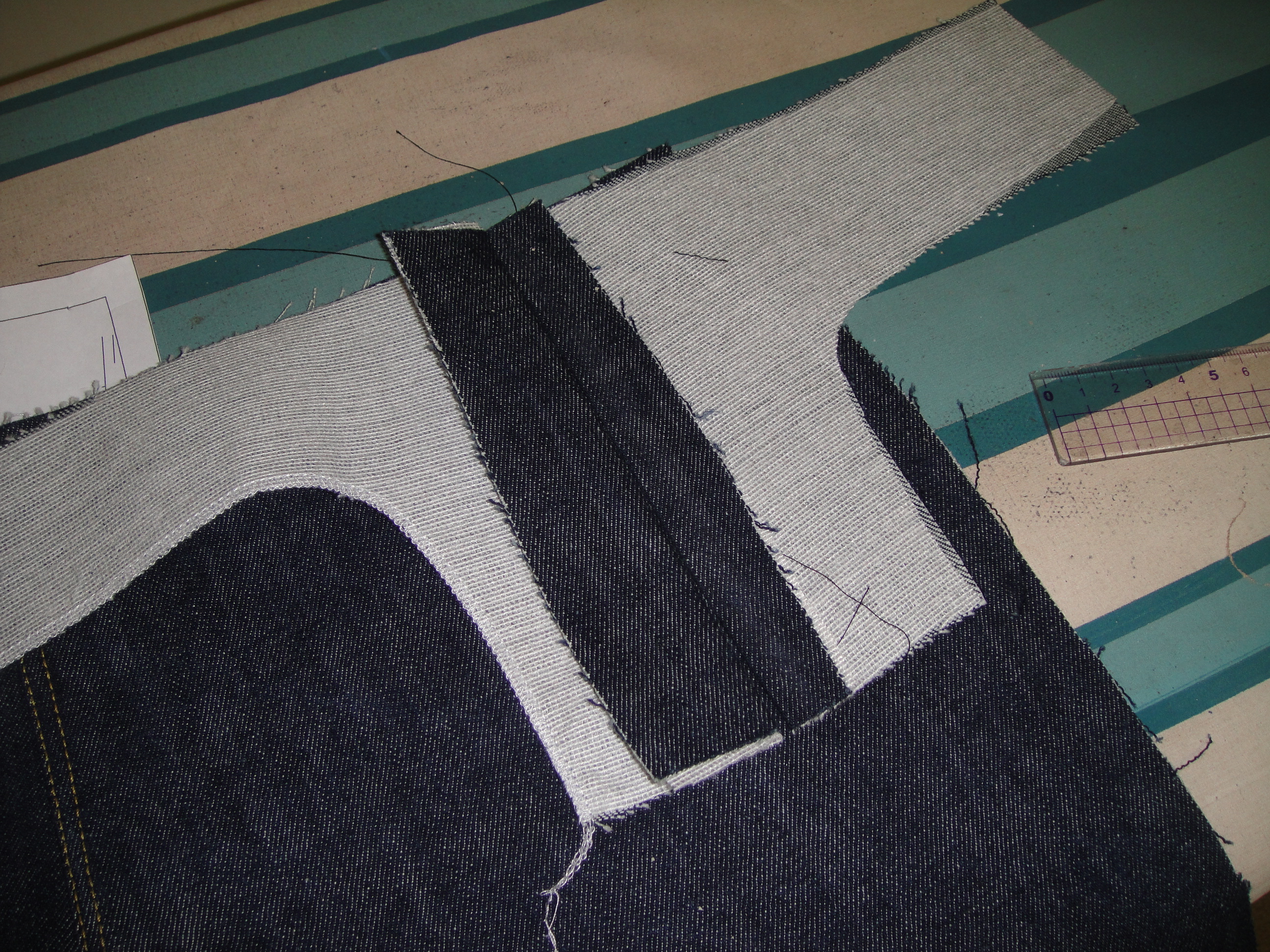 I also used a smaller number of buttons than called for, because it “looked right” and I thought it would be okay on the denim. So there’s a bit of gaping that shouldn’t be there. Lesson learned.