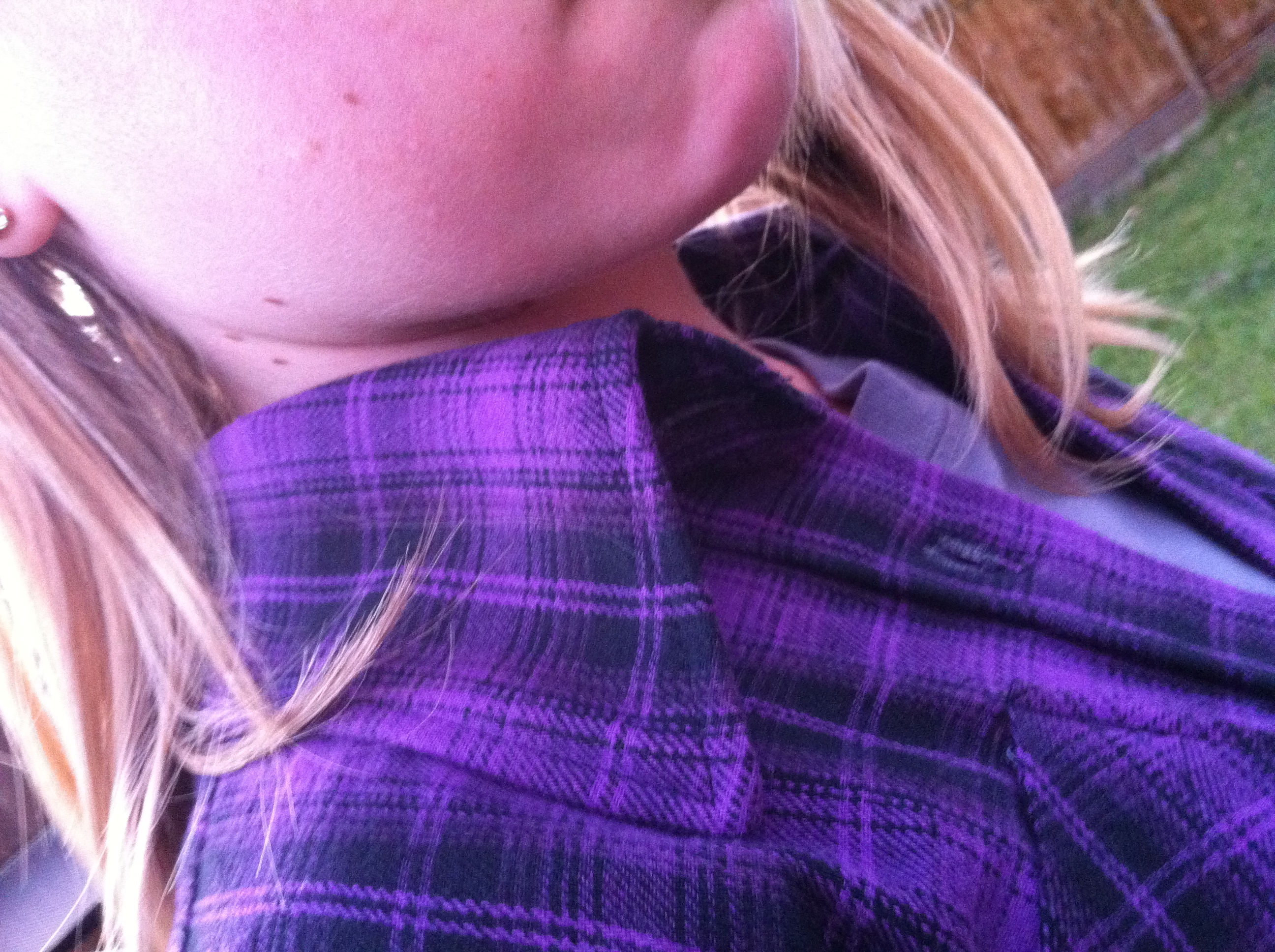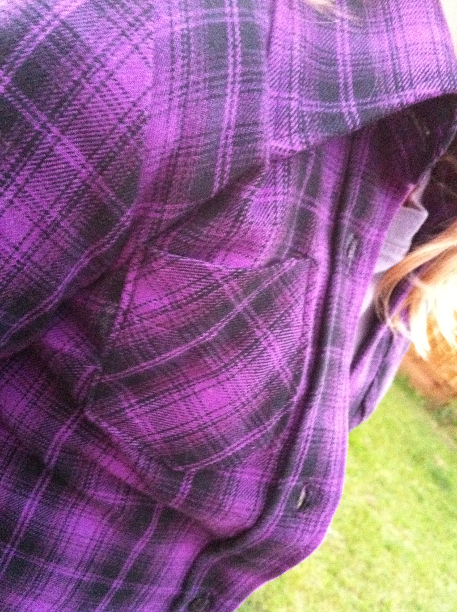 The plackets. This is only my second set of plackets, and thus far both have been made out of flannelly material, which is probably not the easiest stuff for it. I’m reasonably happy with how they turned out, however, despite a certain amount of user error. This is the little-house-on-the-placket style of placket, I think. I say I think because instead of the little house with an addition on the side shape of the other pieces I’ve seen, this one had a double peak to the roof (AA instead of A_ if that makes any sense… I’m too lazy to make a real diagram). I managed, by re-reading Peter’s post, to refresh my memory enough to put the plackets on the right side facing in the right direction (although it was a bit chancy). The user error came in in not allowing enough extra length at the top for the little house-roof-thingy. If I’d paid more attention and made my slash the length recommended by the pattern, it would’ve been fine. It’s still fine, except the opening is about an inch too long (note I didn’t lengthen the placket when I lengthened the sleeve—although looking at the technical drawing I suspect that they just didn’t change the length of the placket when they graded the pattern, so it’s a bit long for the shirt to begin with) so the opening goes clear to the elbow. Also it could really use a button halfway along, but I forgot when I was putting in the buttonholes.