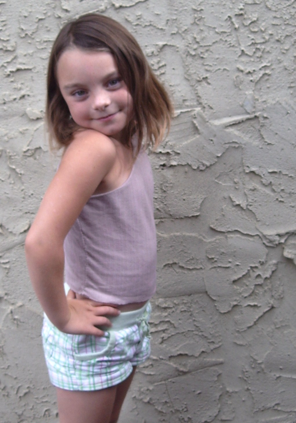 I can see how this fabric might not be very inspiring to look at, but the finished clothes look really pretty and sort of sophisticated. And your daughter, I think the clothes suit her perfectly.