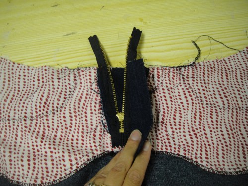 Now that’s a problem solver – an extra long zipper! What a brilliant idea. I love your creative pockets, and I’m going to steal your cardboard template idea for the fly topstitching – why didn’t I think of that before?