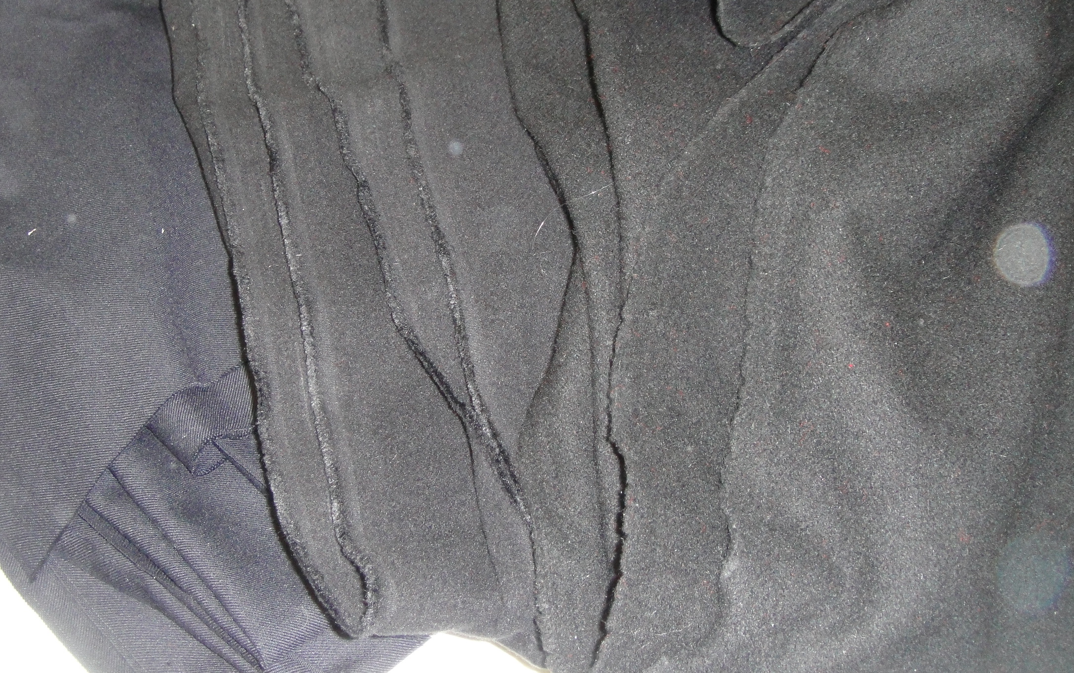 Concerned that my blacks didn’t match, I went back and found a nice cheap poly twill suiting, similar in weight to the original jacket. Cheering myself, I bought three metres. It would be perfect, a much better match to the original. I proudly showed it to my husband.