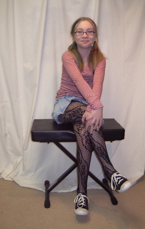 The outfit looks really cute on her. You might have lost your tights and shoes though.