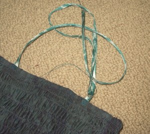 But, back to the silk. My strips were cut on the bias, more because the portion of the skirt I I’d had to cut off had been cut on the bias than because I wanted skinny little spaghetti straps. I actually think these straps turned out a bit too skinny.