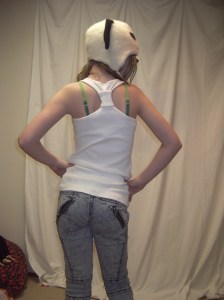 *It occurs to me that this is probably one of those regional word usage things. A wifebeater is a close-fitting, usually rib-knit men’s undershirt, evoking the stereotypical image of the white-trash male sitting his trailer drinking a beer while watching the game and yelling at his wife. By extension, when a girl wears one, it is called a boybeater. Manbeater might be more appropriate, arguably.