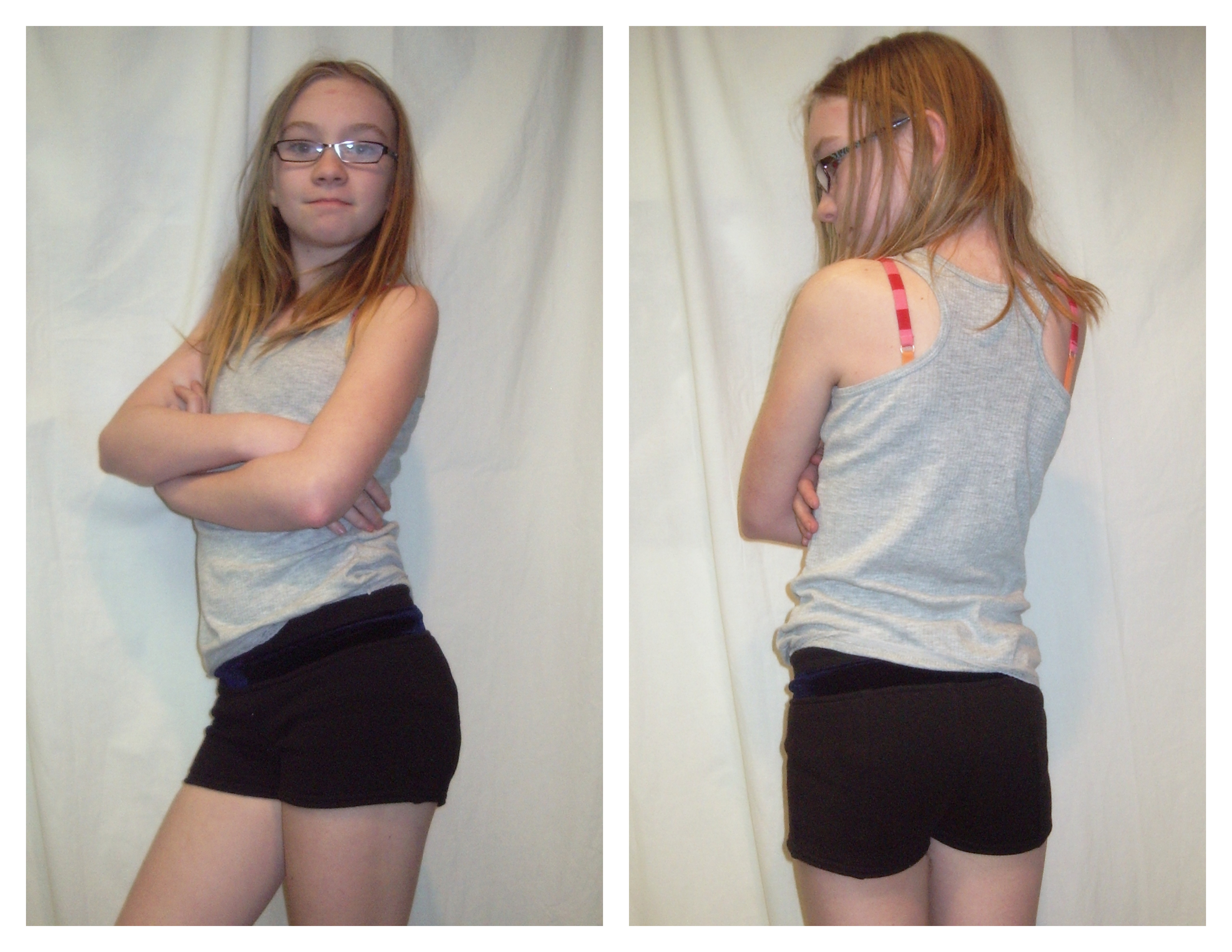 I am very, very, very glad I did this little alteration, as Tyo’s shorts cover very nicely—high enough at the back and covering her entire butt. Yay! Hence the modeled shots here. 1.5 cm may have been a bit excessive, but I’d rather be safe than sorry in this case.