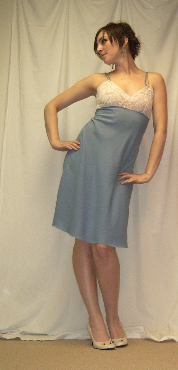 Em. So, this is my first time sewing with lace (other than as a trim), and my first time sewing with crepe, and my first time sewing something cut on the bias.