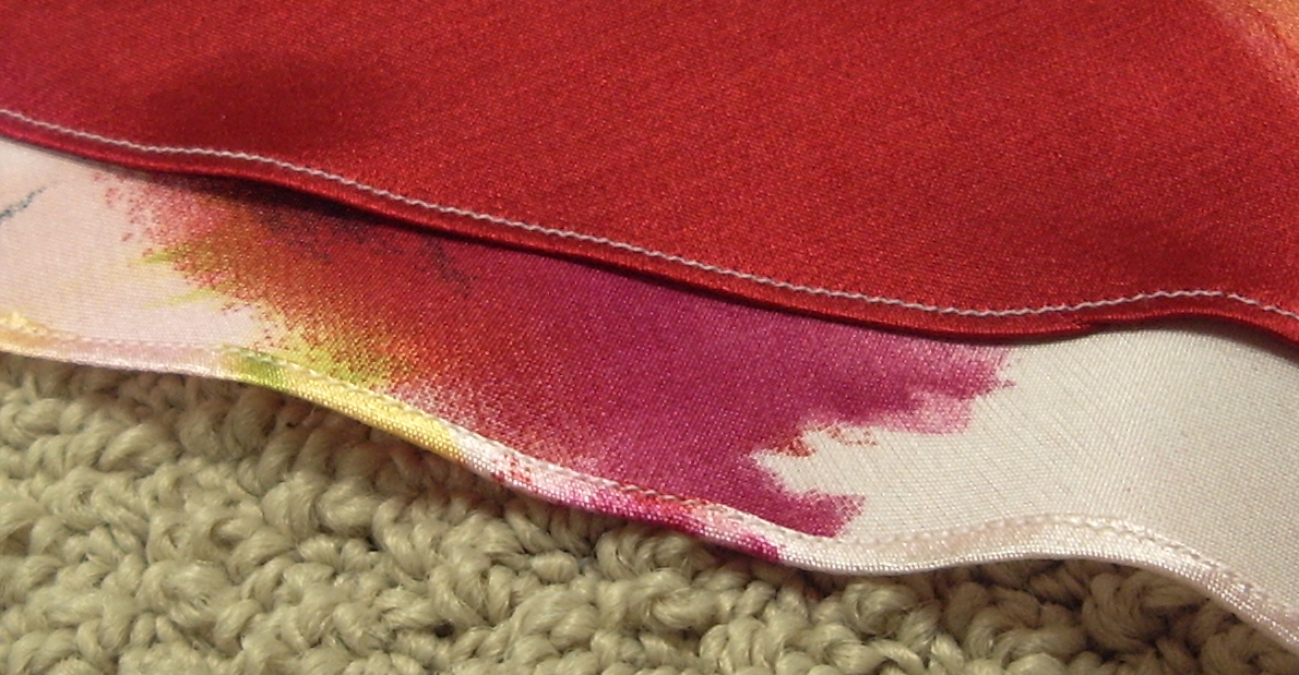 I think it is a beautiful slip, lovely colours and I don’t think a print like that needs to line up at the sides. I just got a narrow hem foot for Christmas, haven’t had a project yet to use it on. In practicing, I was using a sheer poly fabric, scraps from the outfit I made in September. It looked better sewn twice and a bit of spray startch seemed to help keep it from getting away from me. “The Good” photo looks perfect and even the little messy area won’t be noticed by anyone but you.