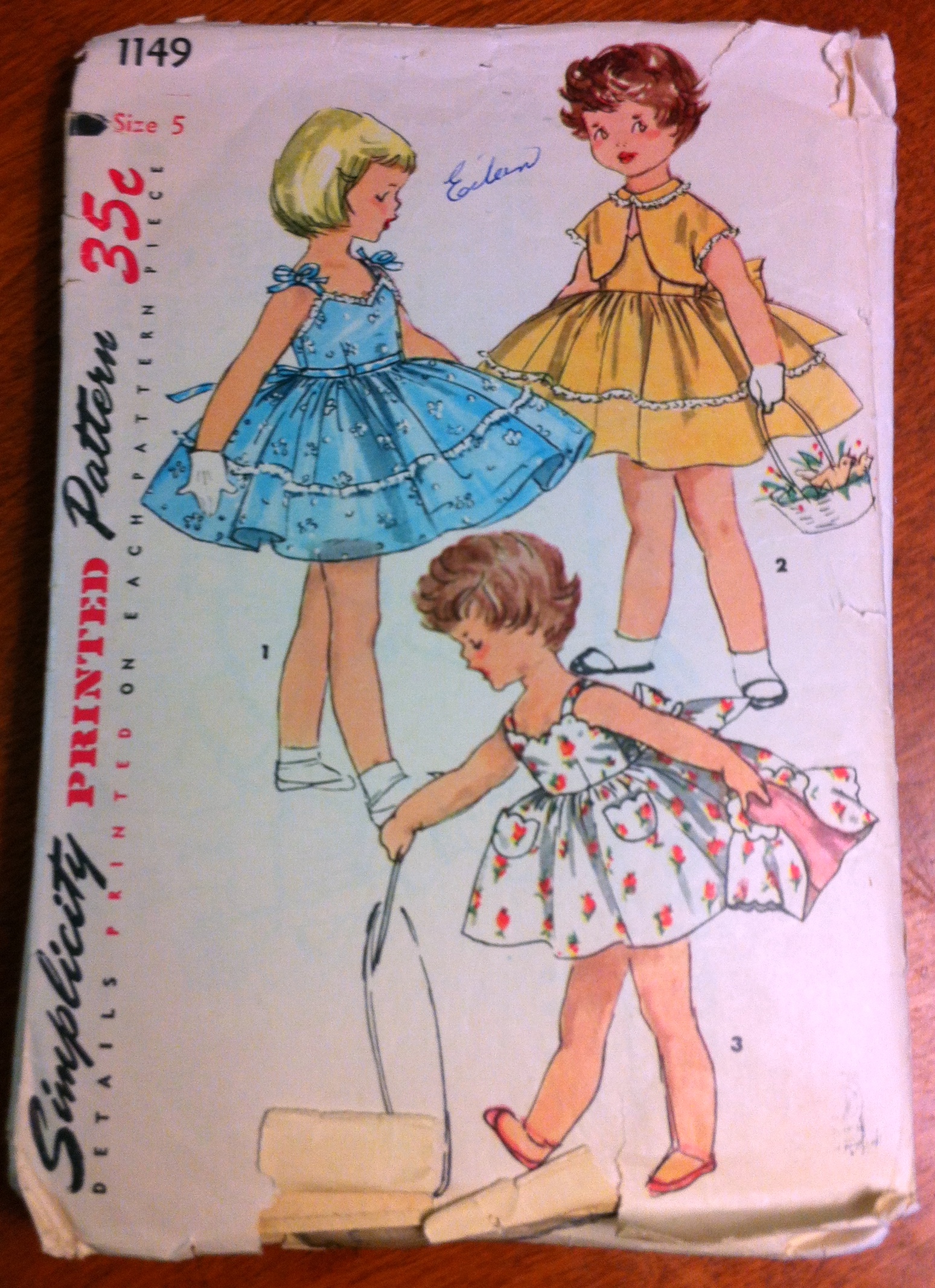 Is there anything cuter than fifties children’s patterns? The only thing that irks me is that, looking at the pattern pieces, there is absolutely no way the skirts look like that. Not without a humongous crinoline (or possibly a hoop skirt).