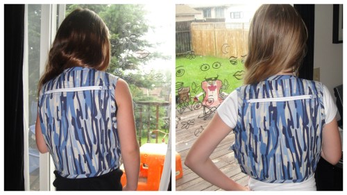 I can only marvel at how intricate these vests are & how amazing they have turned out – so much detail & pieces of fabric & how many notions?!!? Glad you are pleased with the outcome – & the girls look so cool – wonder what they fill their pockets with….