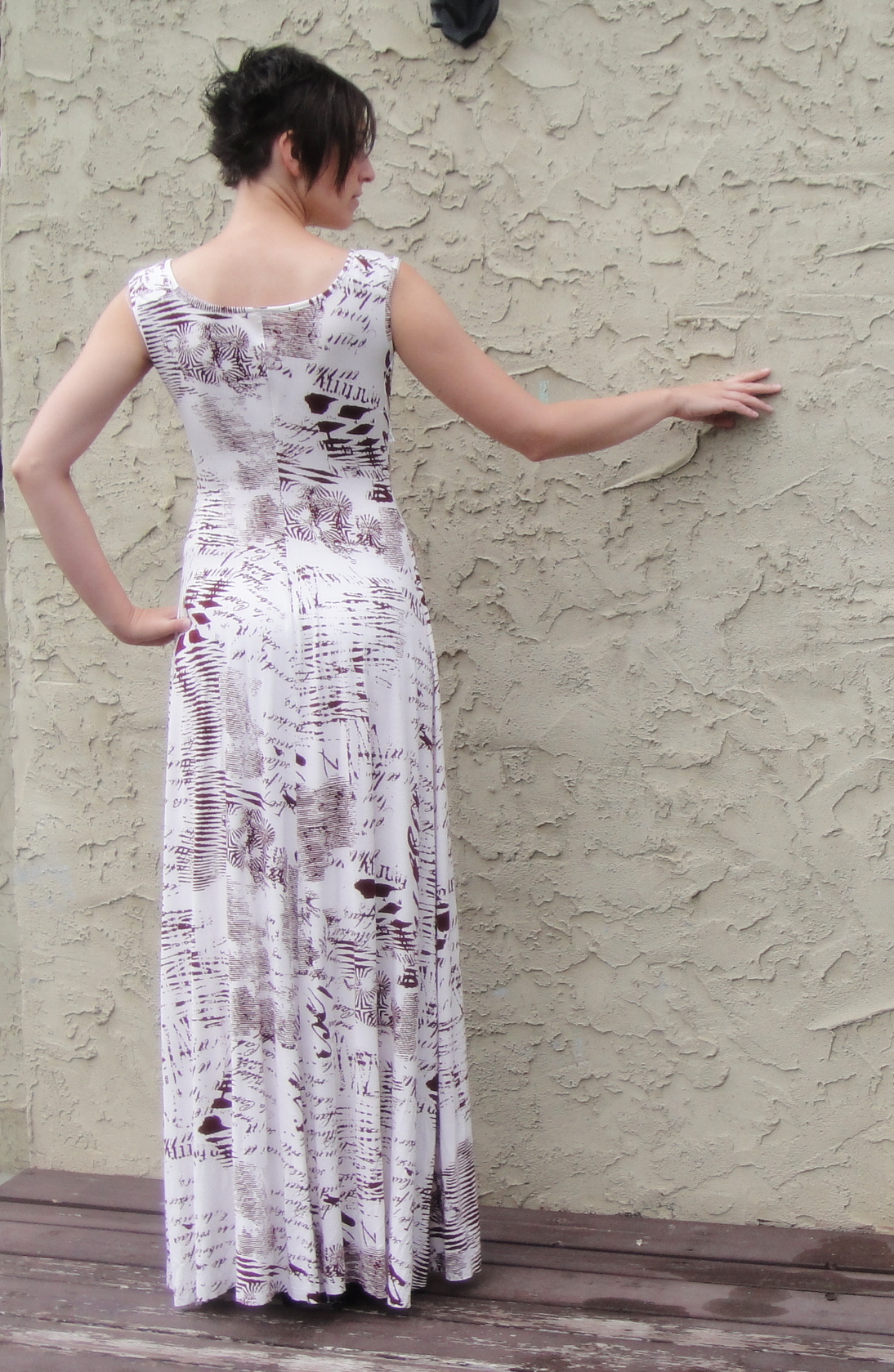 Oh, I love your dress! Now I’m tempted to make a maxi, although it is NOT my best silhouette… The “growing” knits do give me pause, but I think they tend to reach their maximum after the first few wearings — you might have to wash it after each wear to return it to the correct size, though.