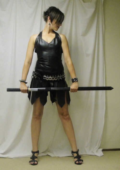 There’s black leather, and then there is a black leather warrior woman’s dress that fits like glove. wow. And yes, we have several swords. Don’t all households?