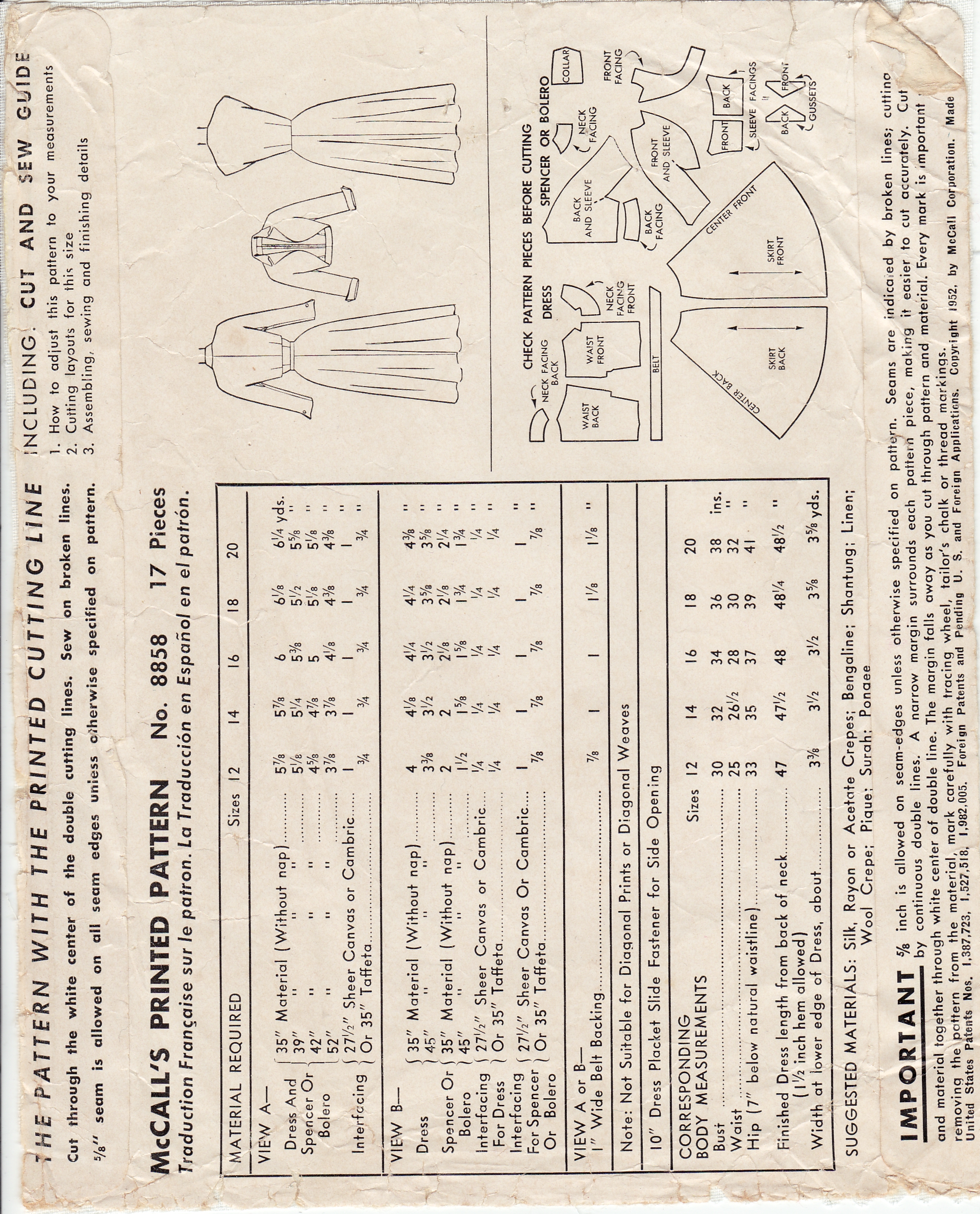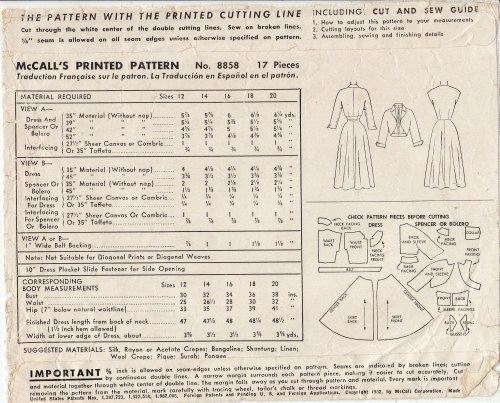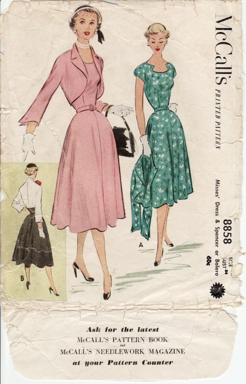 This is McCall’s 8858, which I got from the thrift store in my hometown (now once again my home), back in the spring. It’s © 1952, and is just my size.