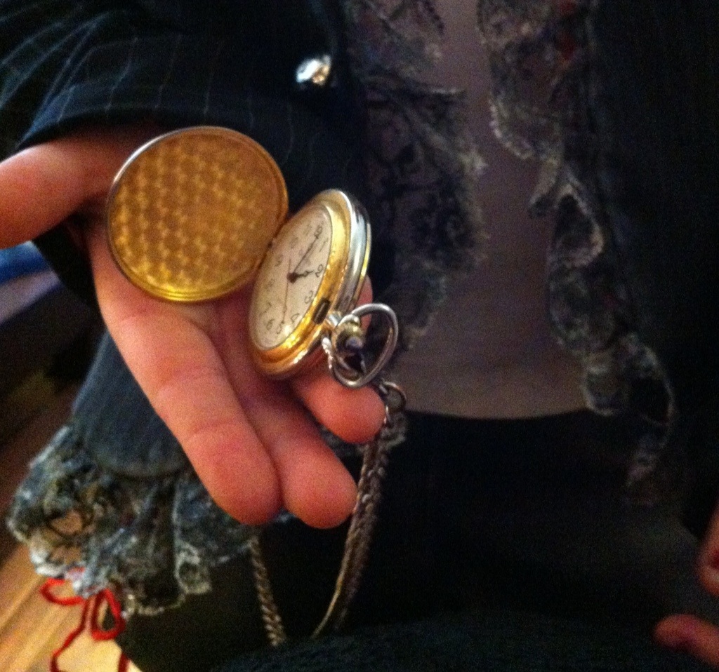 Syo’s pocketwatch. All pocketwatches courtesy of my mother. (Without whom these costumes really wouldn’t have happened, I think.)