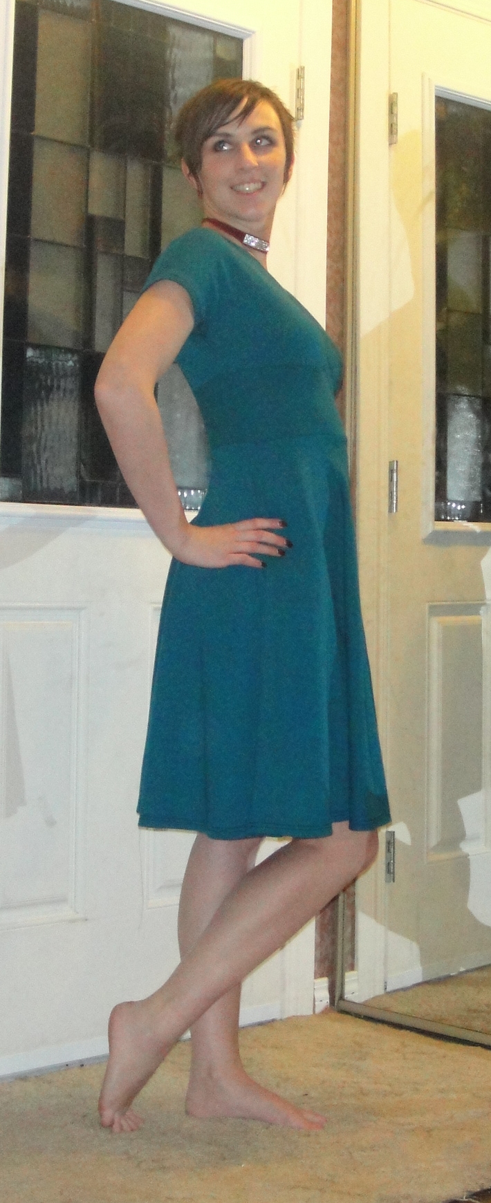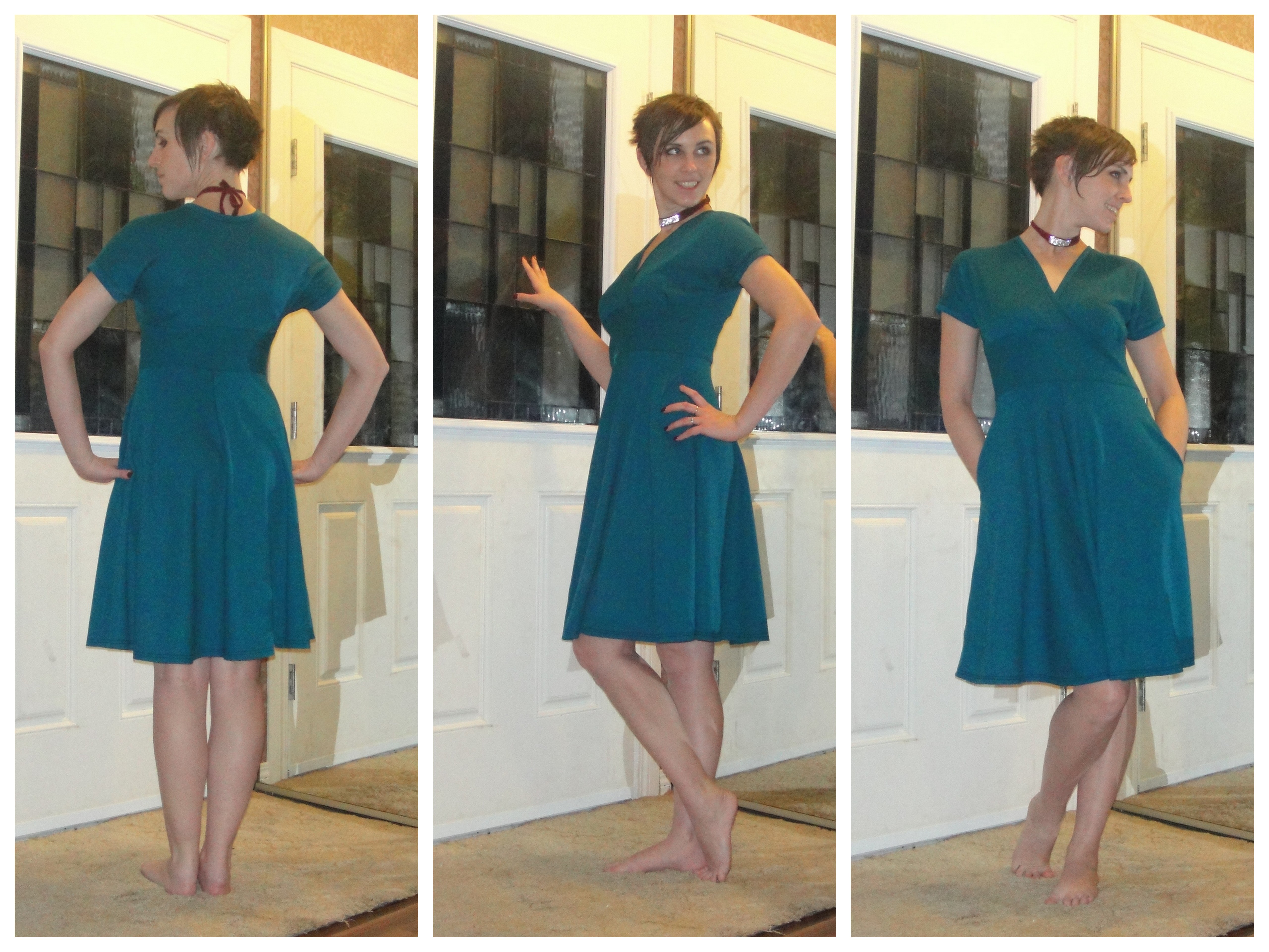 The length is great, and it’s insanely comfortable. Like,PJ comfortable. Which I guess is standard for knit dresses, but I don’t have many knit dresses. I was iffy about the pockets—last time I tried inseam pockets on an A-line skirt, the look  was not so good. But they don’t bother me, and I can tell they’ll be super awesome for actual wearing (although I had probably better not put too much in them…)