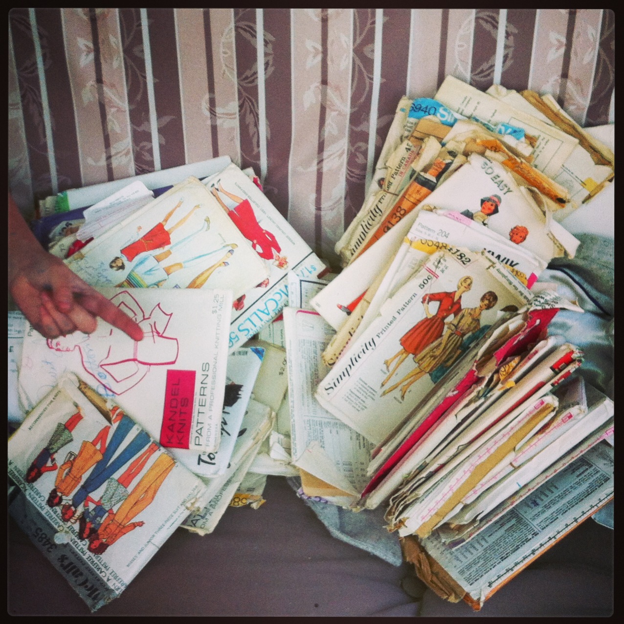 Ok, so I really, really enjoyed going through these patterns with her. There were some gems amid a matrix of 80s monstrosity, mostly 70s, a fair sprinkle of 60s, and even a few 50s patterns. They are well-used, but seem mostly intact. And after she had picked out the ones she wanted to keep (some of which I am totally tracing off at some point, by the way), I got to go through for ones I wanted.