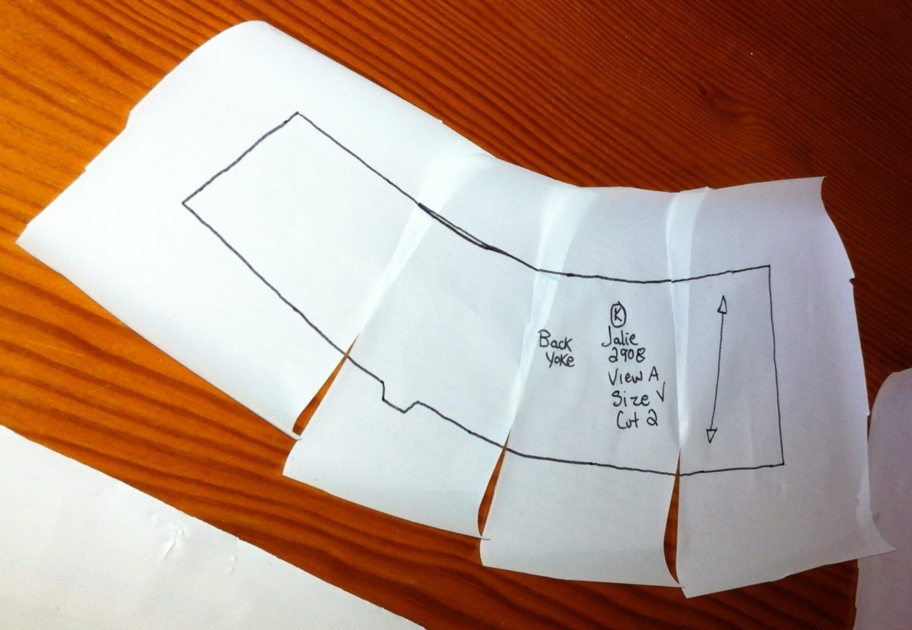 For Stylish, I had her trace off her hip size, and then added the usual suite of alterations I do for Tyo in Jalie patterns—adding to the rear rise with a wedge at CB and curving in the rear yoke. I’ve been working on my contour waistband pattern, too, and I think I may have perfected it—or at least, it appears to work for both my butt AND Stylish’s, which is a friggin’ miracle if you ask me.