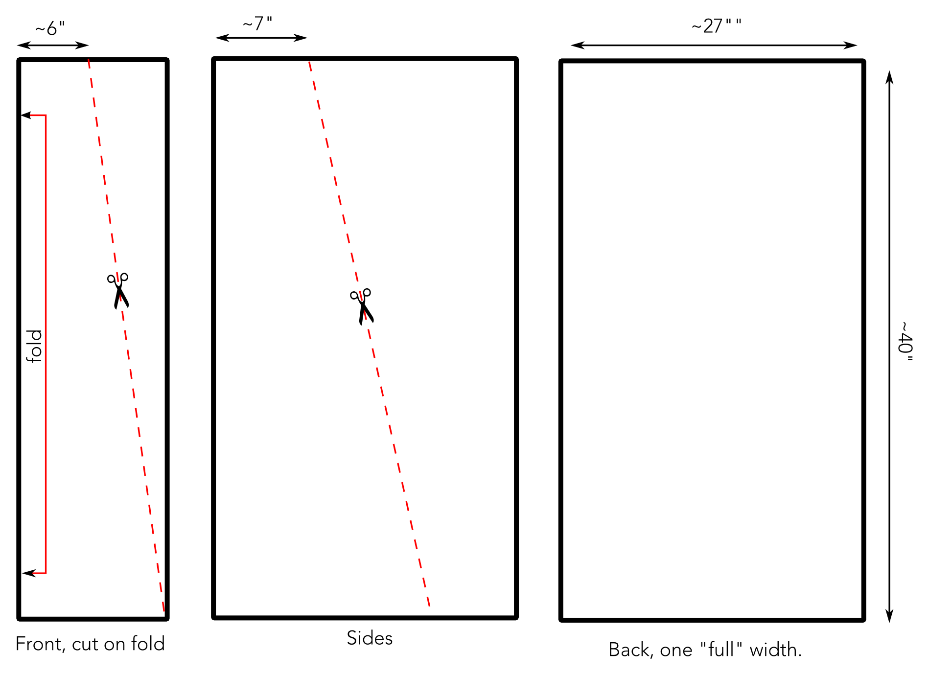 The skirt consists of three gored panels plus a rectangle for the back; the front I cut on the fold, angling from what seemed like a good width at the top out to the full width at the bottom. As per Mrs. Church’s instructions, I cut the side pieces from one length, with an angled line to make two identical pieces, wider a one end, narrow at the other. The back is just a long rectangle of my fabric “width” (artificially narrowed) x skirt length.