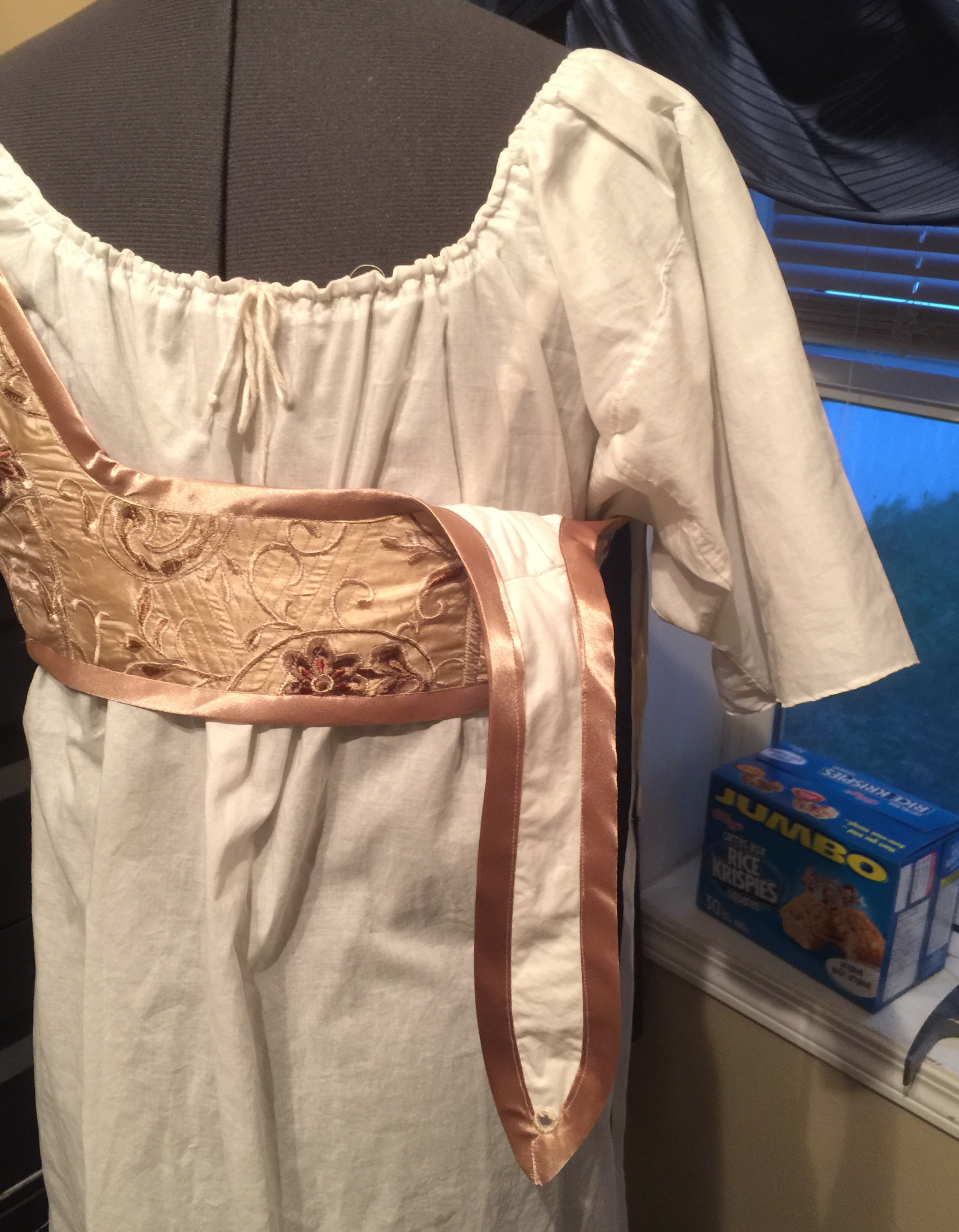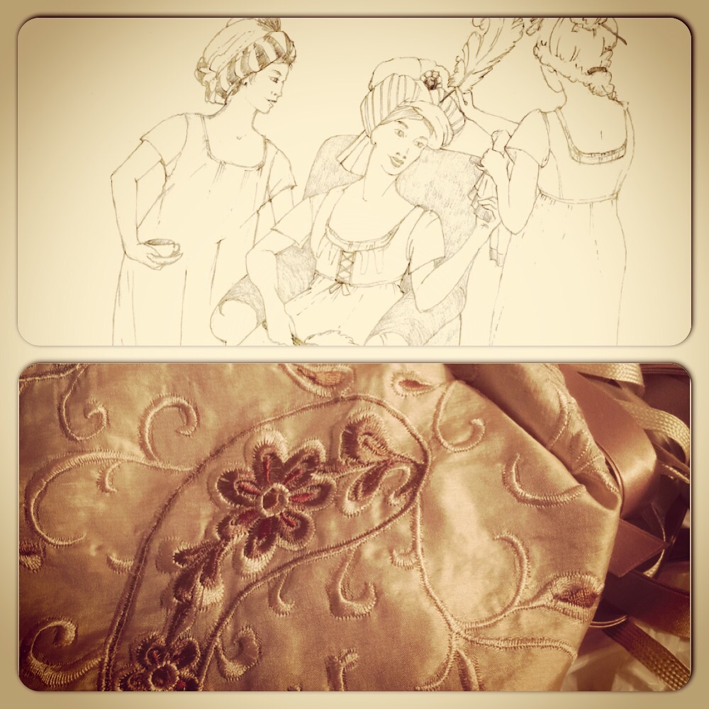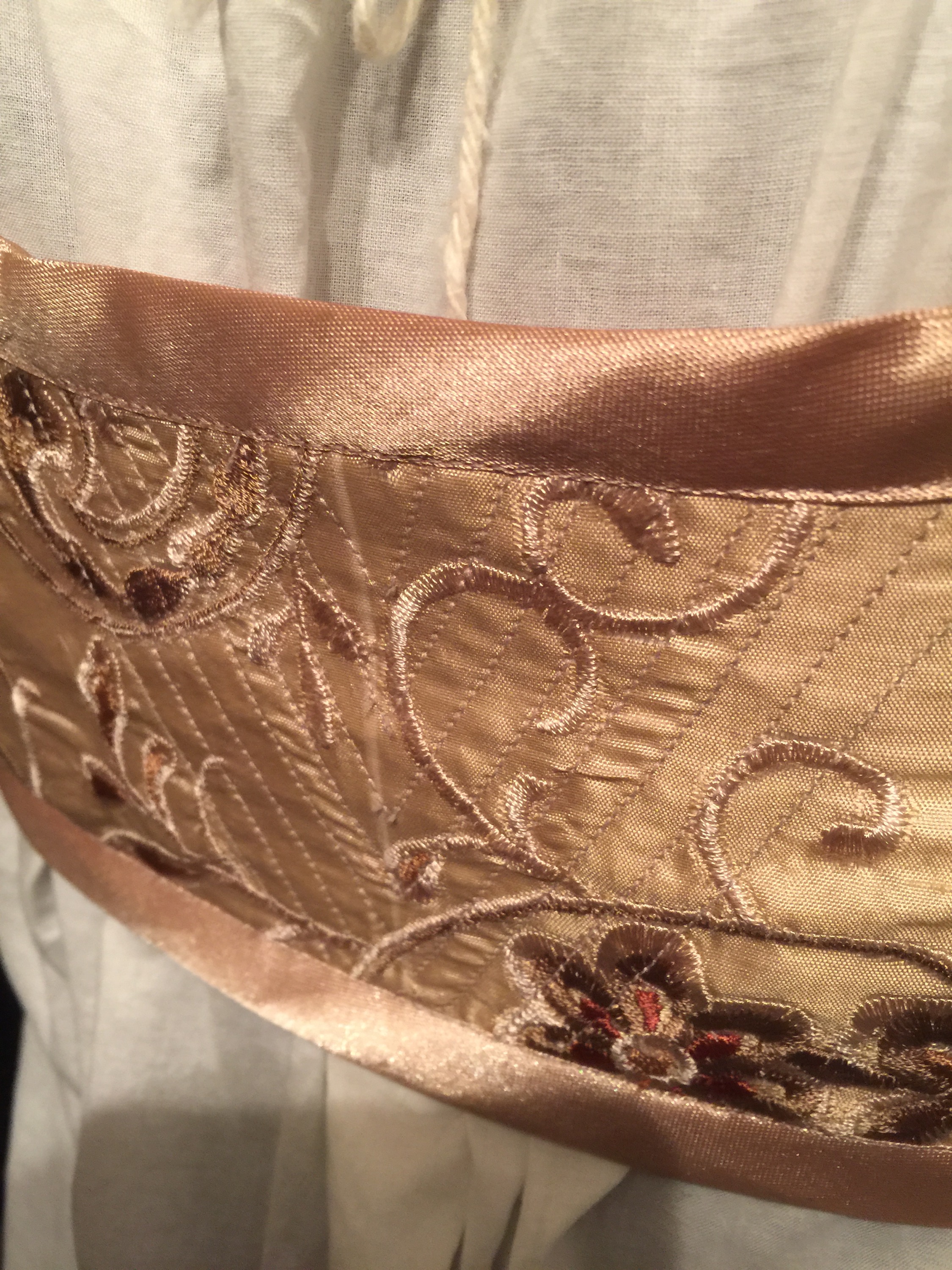 *if there was anything left to throw out after I chose my embroidered silk; I haven’t been able to find anything in period even remotely as ornate as my silk.