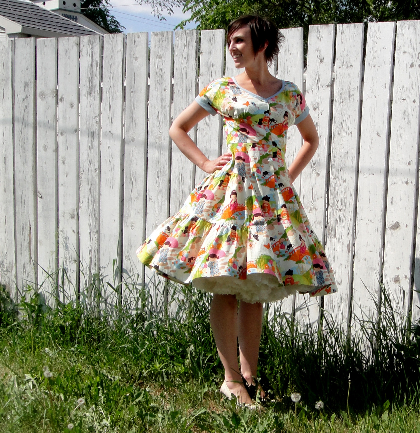 I just happened across your wonderful blog this evening. I actually am googling specific patterns to see images of them actually made up. I am considering Vogue 9106 which you posted with a caption that it was post to come. My only reservation about making the dress is the way the gathers look in the skirt. It looks like it is quite complicated, like it is worked into the skirt at an odd spot. What level of sewing would you rate the dress please? I am not new to sewing, but am not advanced either. Back in the day, long ago, I had a part time job working the fabric department for a TG&Y store (I was the only that knew how to cut fabric) and when the manager realized I did indeed know how to sew he had me start making store displays for the department. I loved it, made gifts for my nieces, outfits for myself, and got paid to do it. Only draw back was I had to leave it up for two months before it could come home.